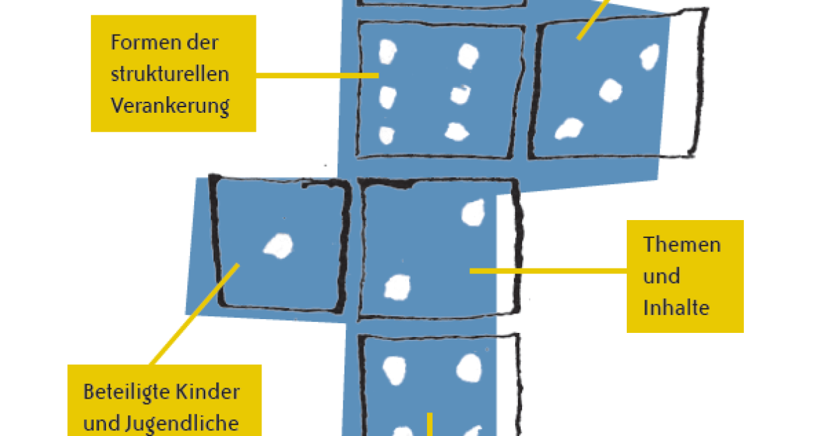Der Beteiligungswürfel zeigt in einer vereinfachten Form die verschiedenen Seiten der von Kindern und Jugendlichen für Entscheidungs- und Einflussmöglichkeiten aus.Der Würfel steht im Gegensatz zu herkömmlichen Stufenmodellen, die nahelegen, dass es eine auf- bzw. absteigende Wertigkeit von Beteiligungsformen und -zuständen gibt. hängt vom jeweiligen Kontext ab und kann in unterschiedlichen Formen und Prozessen gut funktionieren.
